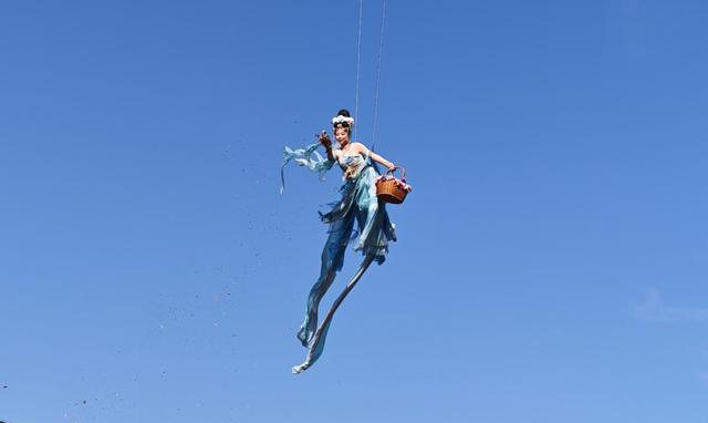 从白天到夜晚,精彩轮番上演、高潮不断。上午有迎宾礼、花神秀、旋鼓舞、敦煌飞天等国风演绎;下午锦衣卫巡游、高杆不倒翁、抛绣球招婿、丝牵偶戏等趣味十足;晚间非遗滚灯舞、吐火、火壶、火魔方等绝技轮番登场,搭配麒麟花车、古风NPC互动巡游,游客仿佛穿越古今,沉浸式感受传统民俗魅力。