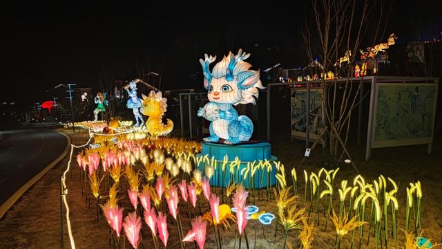 走进后浪公园,浓郁的新春氛围扑面而来。后浪公园精心打造的20余组主题灯组熠熠生辉,2米高的麒麟祥瑞昂首挺立、5米长的龙灵动逼真、7.5米高的巨型财神栩栩如生,樱花树、彩虹飞马、冰雪龙、鹊桥相会等造型惟妙惟肖,一步一景皆成画卷,随手一拍都是佳节大片。